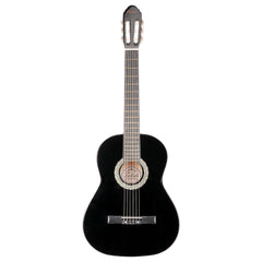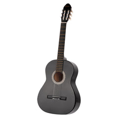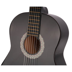 Discover warm, rich tones with the 39” Acoustic Guitar in black. Its solid linden wood body and plywood back and sides ensure durability and clear sound projection. The nato wood neck and smooth black-finished linden fingerboard with brass frets provide comfortable playability. Chrome-plated tuners keep your instrument in tune, while 6 nylon strings offer a soft, mellow voice perfect for beginners and classical players. Finished with a stylish black-trimmed body, this guitar combines quality and elegance to support your musical journey.