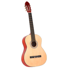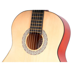 Discover warm, rich tones with the 39” Acoustic Guitar in bright wood. Its solid linden wood body and plywood back and sides ensure durability and clear sound projection. The nato wood neck and smooth black-finished linden fingerboard with brass frets provide comfortable playability. Chrome-plated tuners keep your instrument in tune, while 6 nylon strings offer a soft, mellow voice perfect for beginners and classical players. Finished with a stylish black-trimmed body, this guitar combines quality and elegance to support your musical journey.