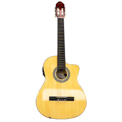 - PREMIUM CONSTRUCTION: 39-inch cutaway classical guitar with solid linden wood body, linden plywood back and sides, nato wood neck, and black-finished linden pentagonal fingerboard for durability, smooth playability, and rich acoustic tone.