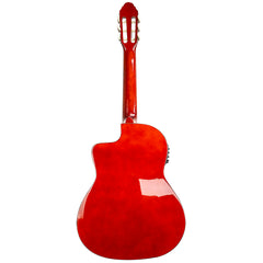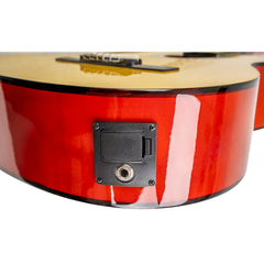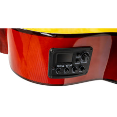 Experience exceptional sound and ease of play with the 39” Electro Acoustic Cutaway Guitar (ACG-3910CEQ-YH). Built from solid linden wood with linden plywood back and sides, a nato neck, and a black linden fingerboard, it offers rich acoustic tones and a smooth feel. Brass frets and chrome tuners enhance precision, while nylon strings deliver authentic classical warmth. The built-in 4-band EQ, internal microphone, and LCD chromatic tuner provide effortless tone control and tuning. Dual 1/4” and XLR outputs make it perfect for live performances and recording sessions.