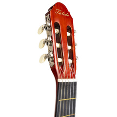 - AUTHENTIC CLASSICAL DETAILS: Brass frets, chrome-plated tuners, black-trimmed body with embedded ABS edges, and nylon strings deliver traditional classical sound with elegance.