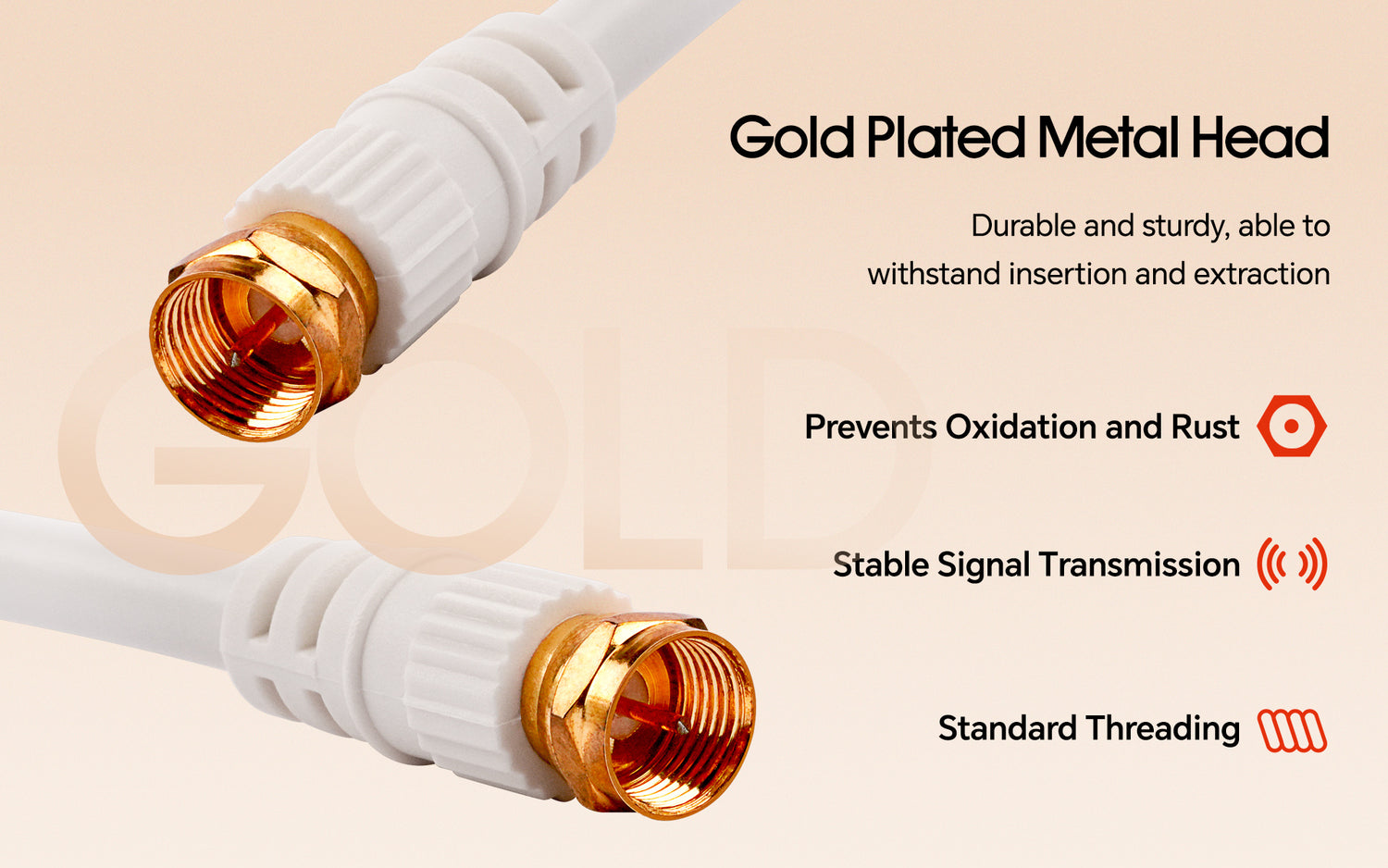- GOLD-PLATED CONNECTORS: This high-quality video cable is precisely crafted for top-notch performance, boasting gold-plated compression connectors that guarantee a perfect connection every time. It can effortlessly secure your devices and eliminate the need for extra tools