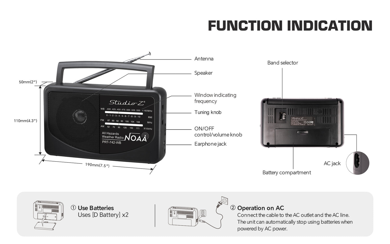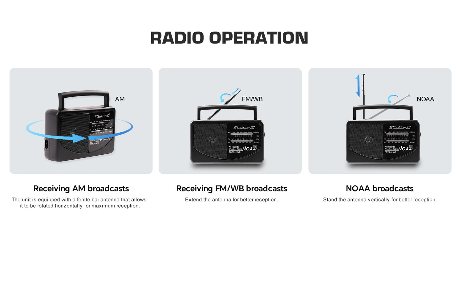 - PREMIUM SIGNAL RECEIVER: This high quality FM, AM,WB 3 band receiver, with a reception range of AM 520-1710KHz, FM 87-108MHz, and WB 162.4-162.55MHz ensures superior radio reception. Whether you're at home or on-the-go, this transistor radio guarantees easy access to local radio stations