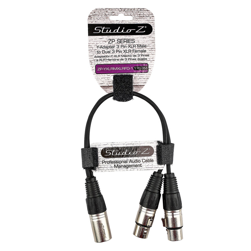 1' Y-Adapter 3 Pin XLR Male to Dual 3 Pin XLR Female Cable (ZP-YXLRMXLRFD-1)