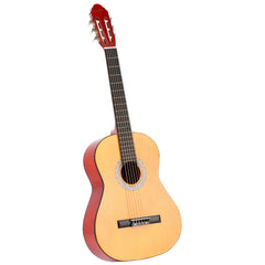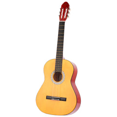 Discover warm, rich tones with the 39” Acoustic Guitar in yellow. Its solid linden wood body and plywood back and sides ensure durability and clear sound projection. The nato wood neck and smooth black-finished linden fingerboard with brass frets provide comfortable playability. Chrome-plated tuners keep your instrument in tune, while 6 nylon strings offer a soft, mellow voice perfect for beginners and classical players. Finished with a stylish black-trimmed body, this guitar combines quality and elegance to support your musical journey.