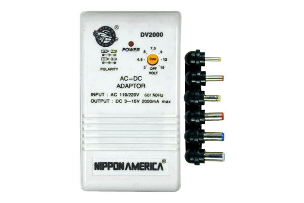 - ADJUSTABLE OUTPUT VOLTAGE RANGE: The DV-2000 features an extensive output voltage range, offering selectable DC outputs of 3V, 4.5V, 6V, 7.5V, 9V, 12V, and 15V. This versatility makes it compatible with a wide array of electronic devices, including many low-voltage applications.