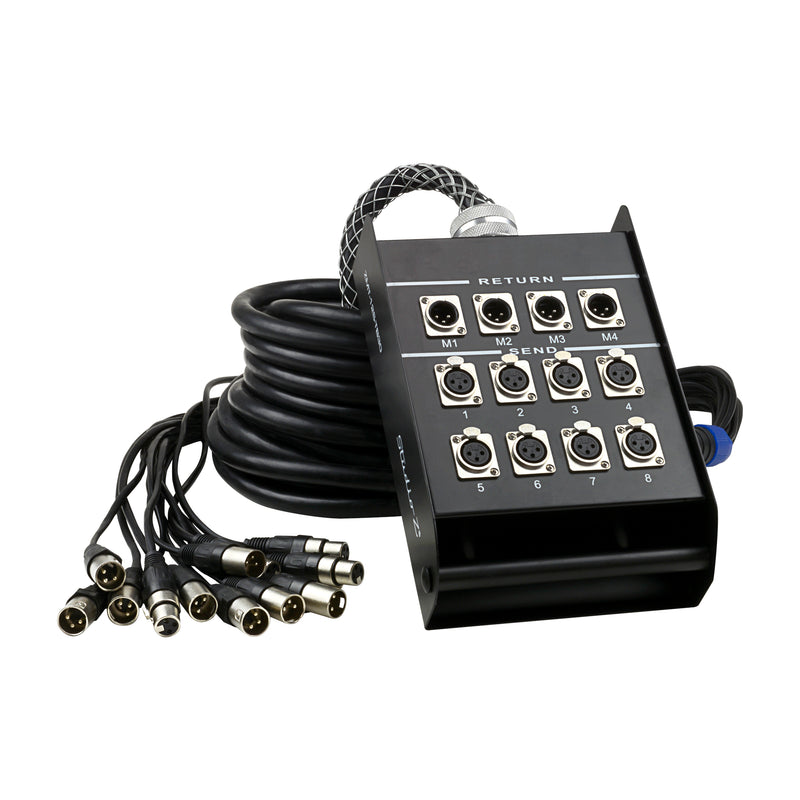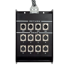 This XLR snake cable contains multiple audio cables neatly bundled together in one outer casing, providing both organization and convenience. Featuring ultra-pure OFC wires and metal connectors with tin-plated pins, this durable cable guarantees a crisp, clean, and refined sound. The stage box is numerically labeled. With 8 XLR sends and 4 returns, it's the perfect solution for any setup!